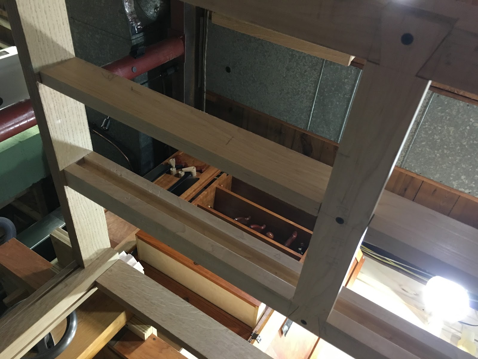 A view of the underside.  With the stiffener dropped into a sliding dovetail from above, and this cross-piece screwed in from below, it's completely locked together.